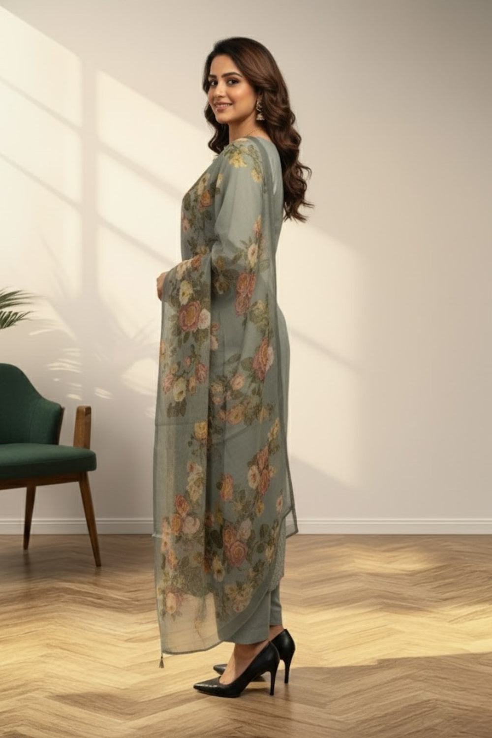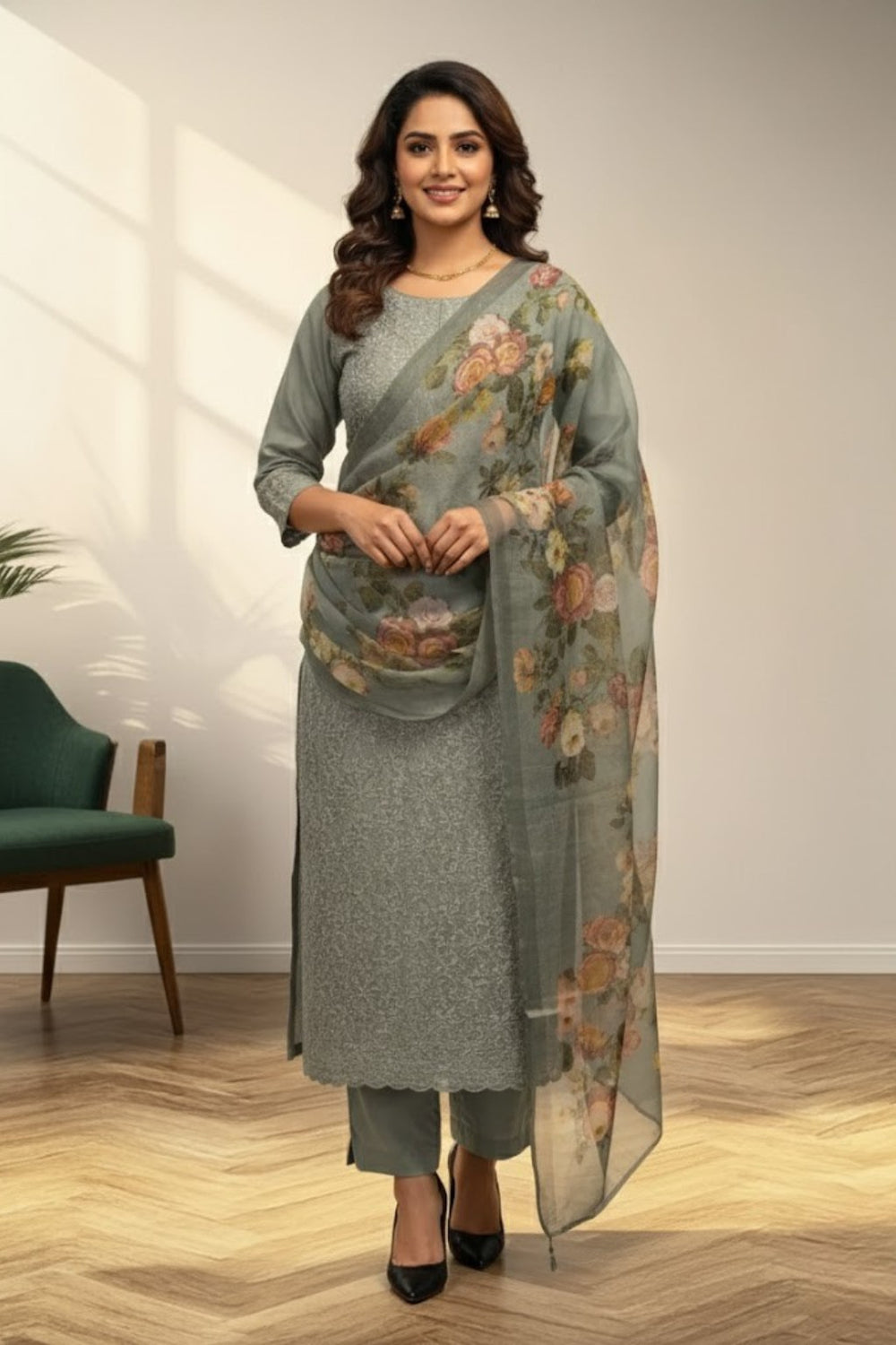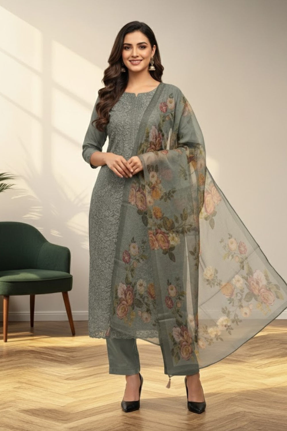 A beautiful blend of floral artistry and classic embroidery, this organza set makes every stitch feel couture-worthy.